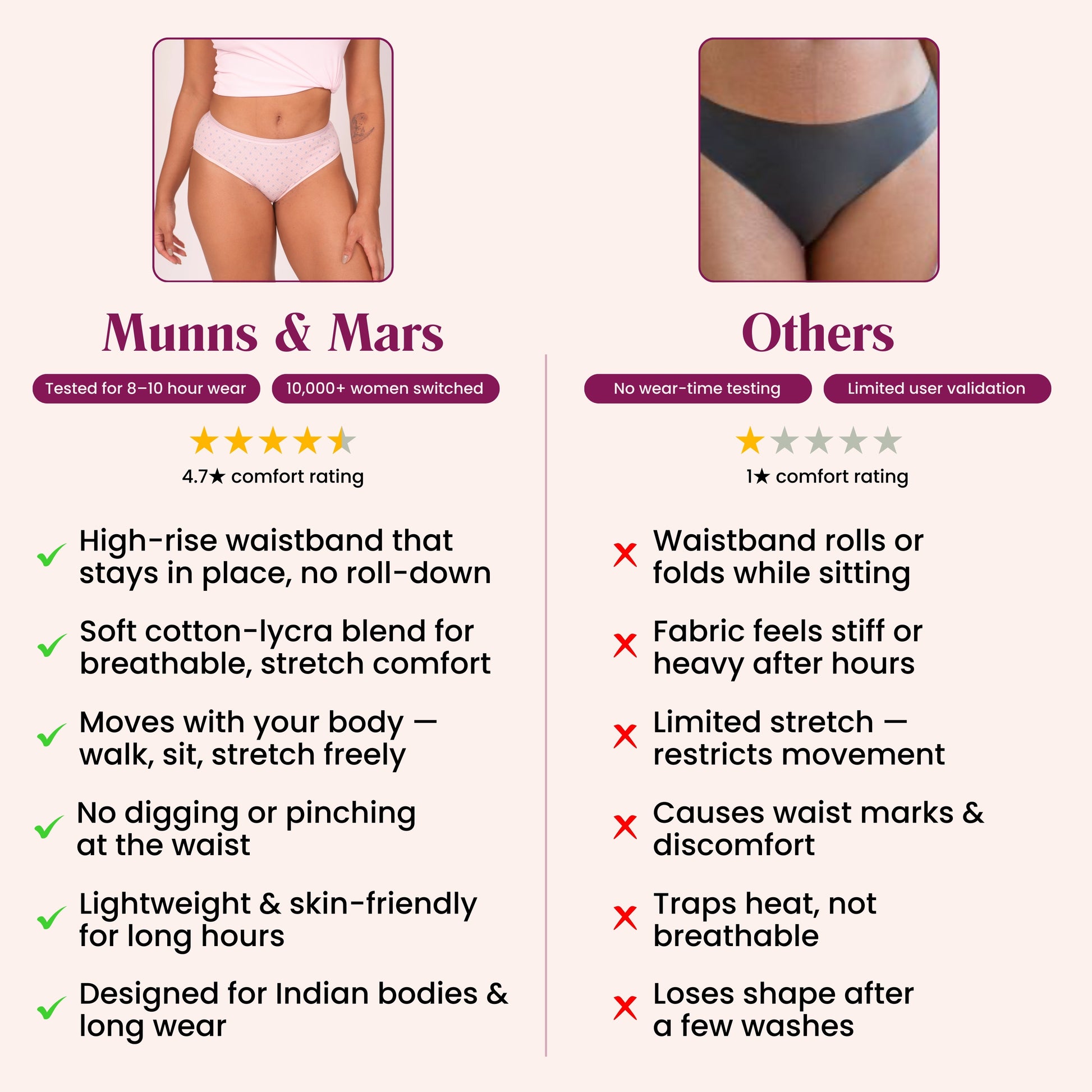 Mentioned prices are for same or similar quality products across other Shapewear and Lingerie brands.